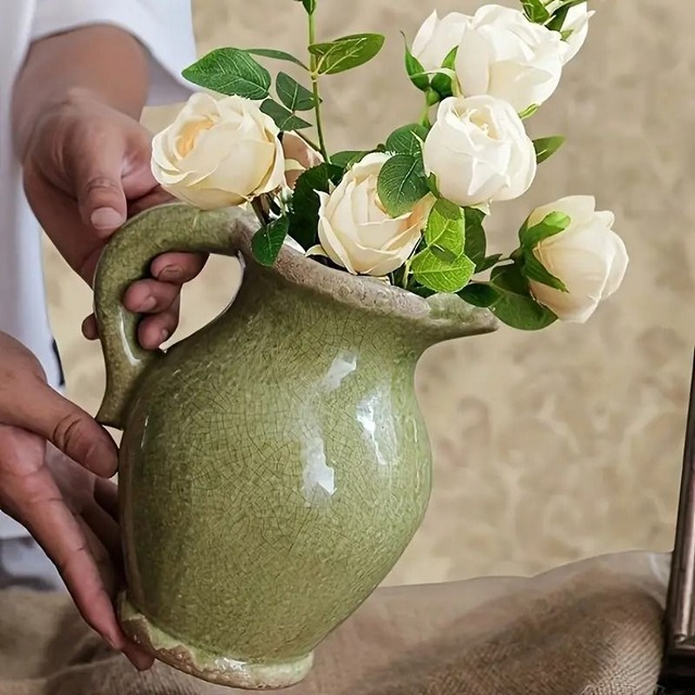 花瓶 フラワーベース 花器 ハンドル付き ドライフラワー 造花 セラミック花瓶 おしゃれ ヴィンテージ レトロ シンプル セラミック リビングルーム 玄関 装飾 インテリア 置物 オブジェ ホームデコレーション