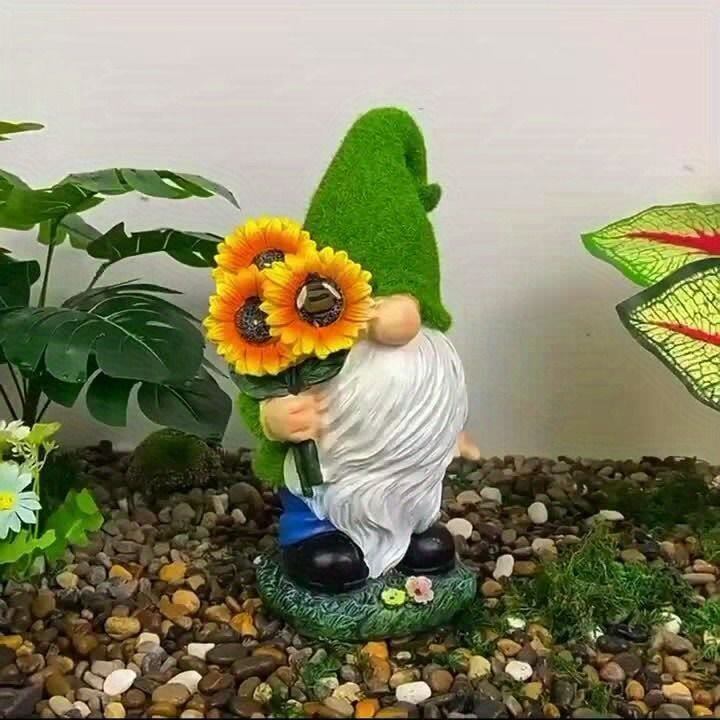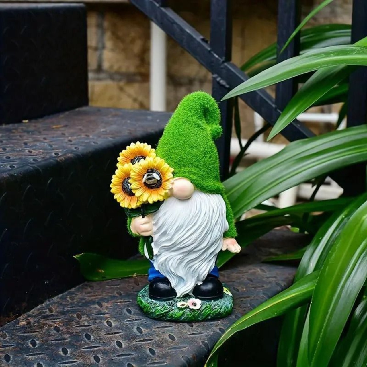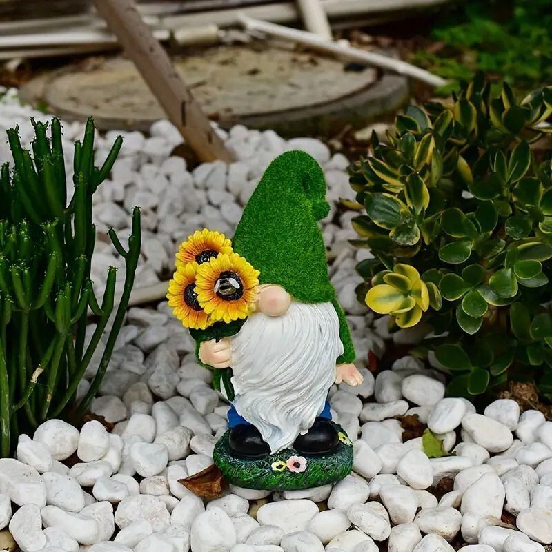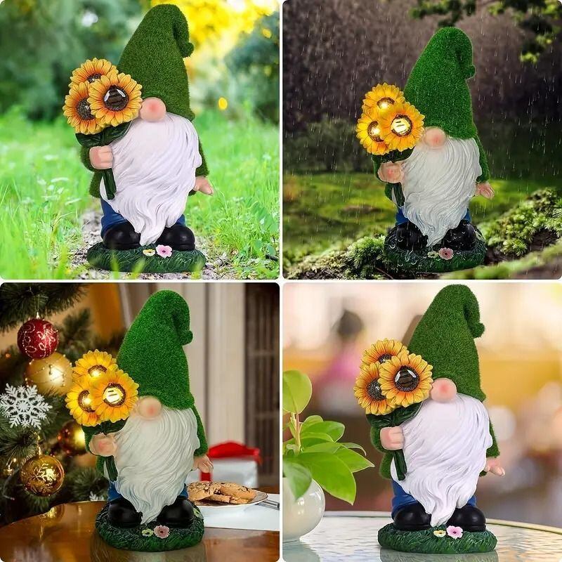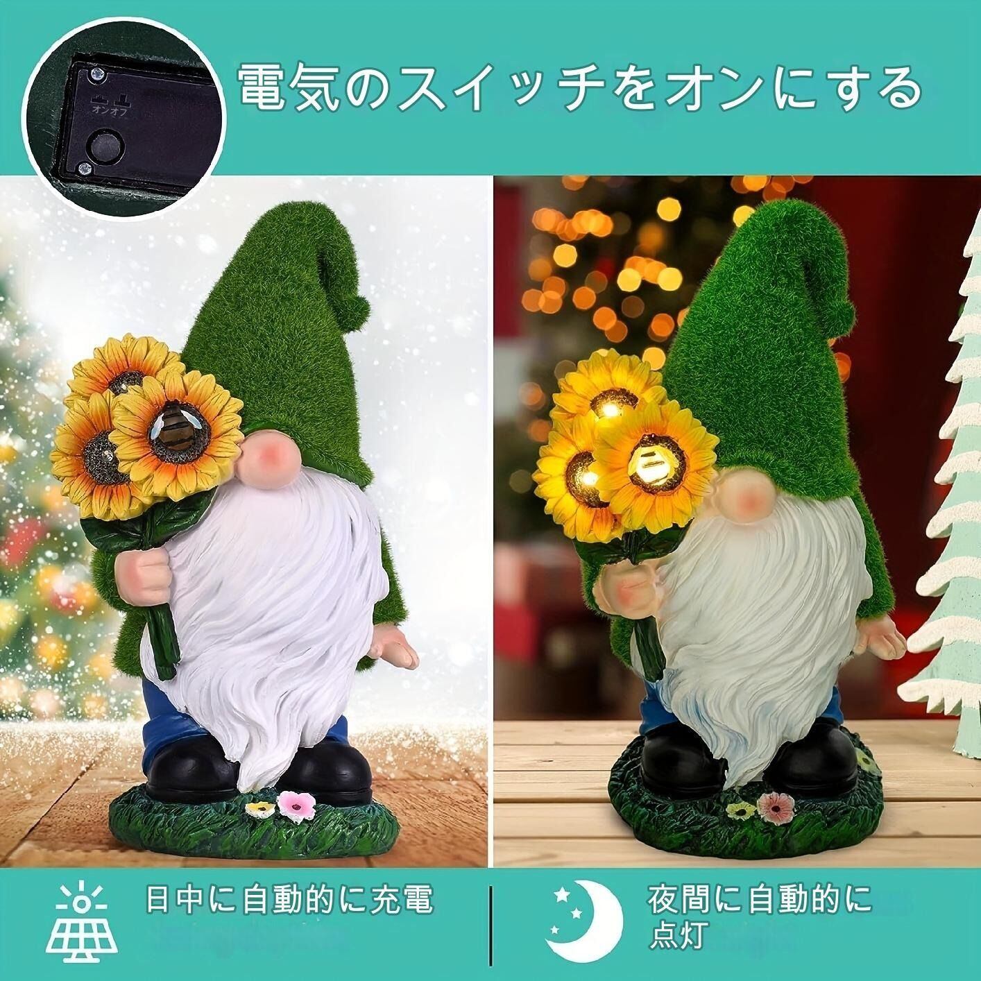 可愛らしい姿のノームが夜を照らす、ソーラーライトガーデンオーナメントです。