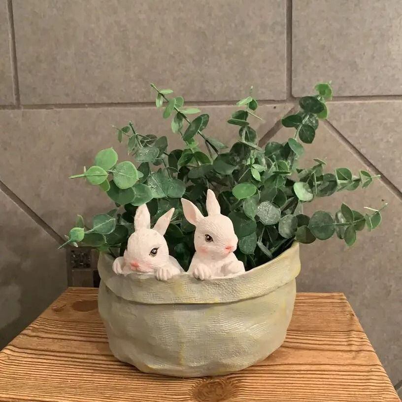 可愛いミニうさぎの形をしたセラミックプランター。おしゃれで癒しを与えるアイテム。