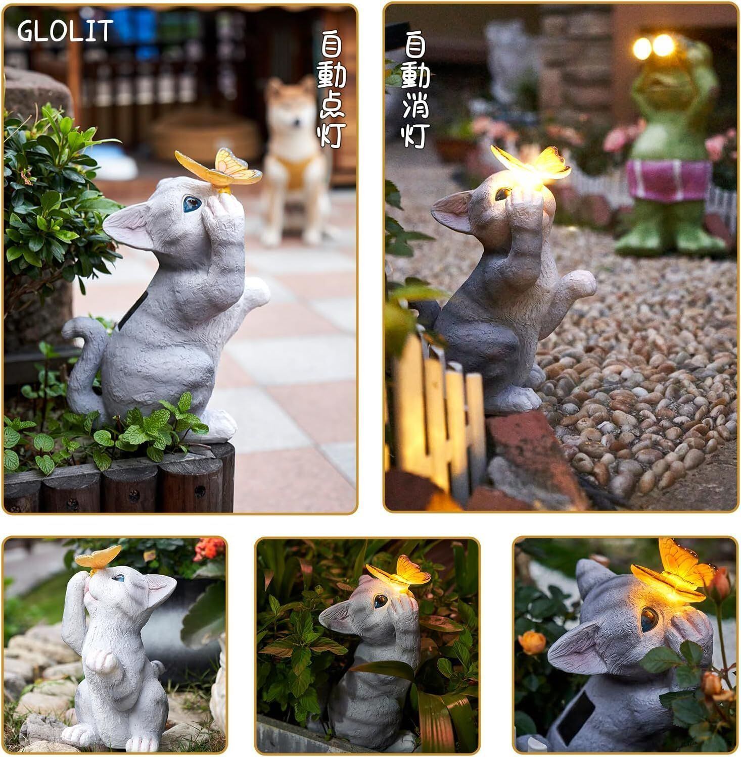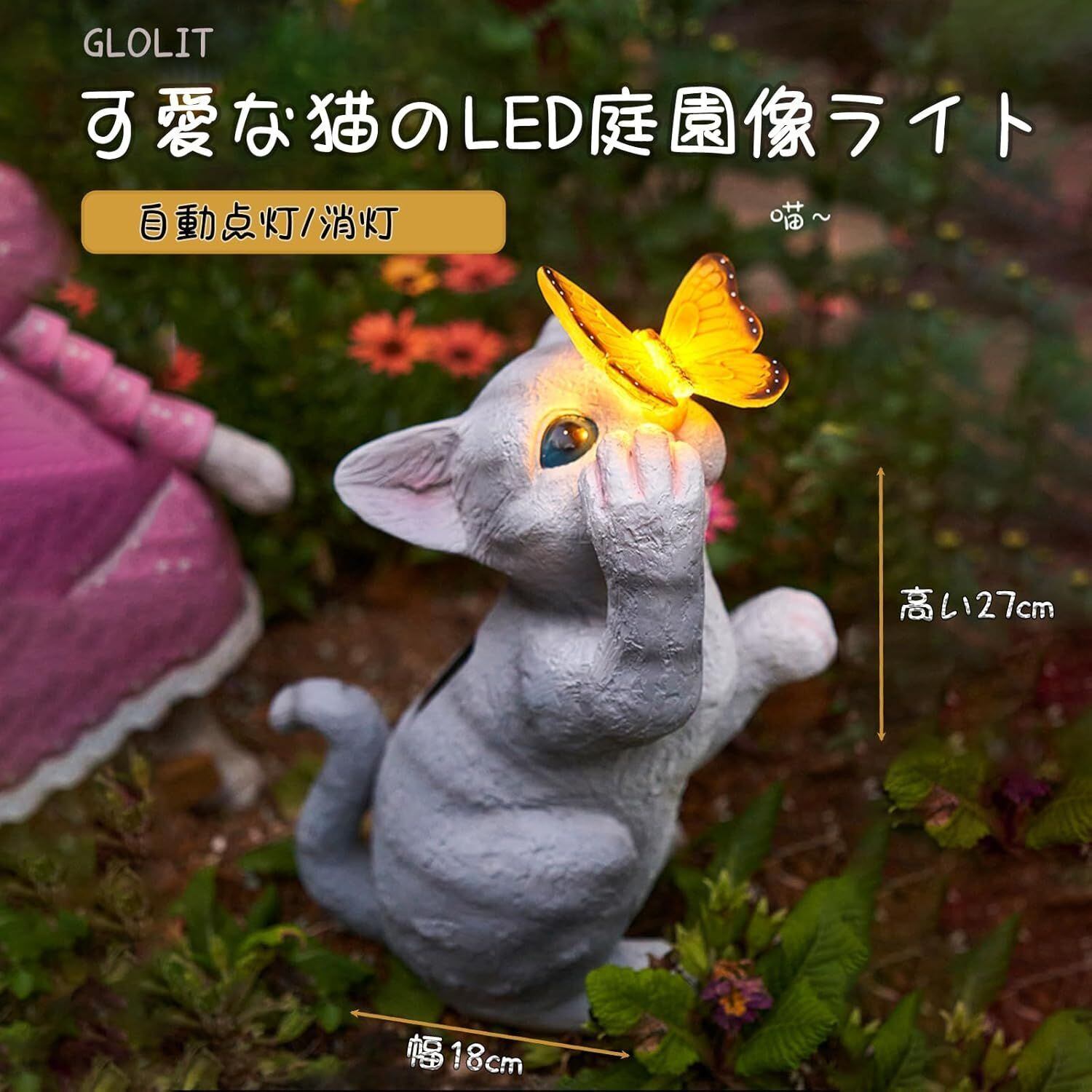 置物 LEDライト かわいい ねこ 蝶 ソーラーライト ガーデンライト ソーラー 防水 猫 ガーデンオーナメント ガーデニング雑貨 飾り 屋外 防水 自動点灯 自動消灯 置物ライト
