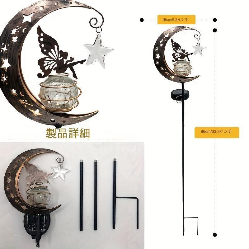 メタル製のステークライトに、華やかな天使の装飾が施されたムーンフェアリー。