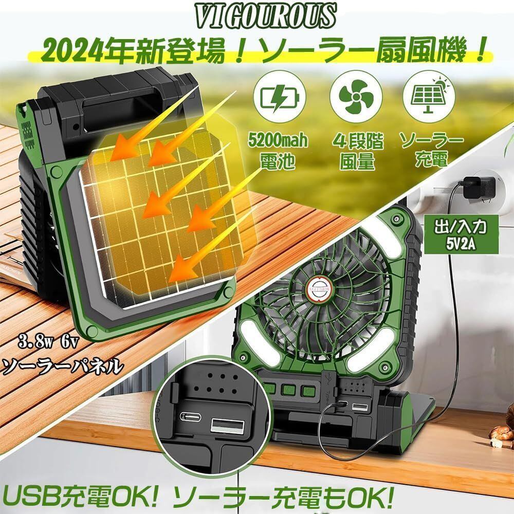 ソーラーファン 5200mah キャンプ 扇風機 4段階風量 ライト付 携帯扇風機 3段階ライト 3段階タイマー 5V2Ausb充電 ソーラー充電 サーキュレーター 卓上 アウトドア 防災 キャンプ用品 車中泊 コンパクト 持ち運び | mellland インテリア 雑貨