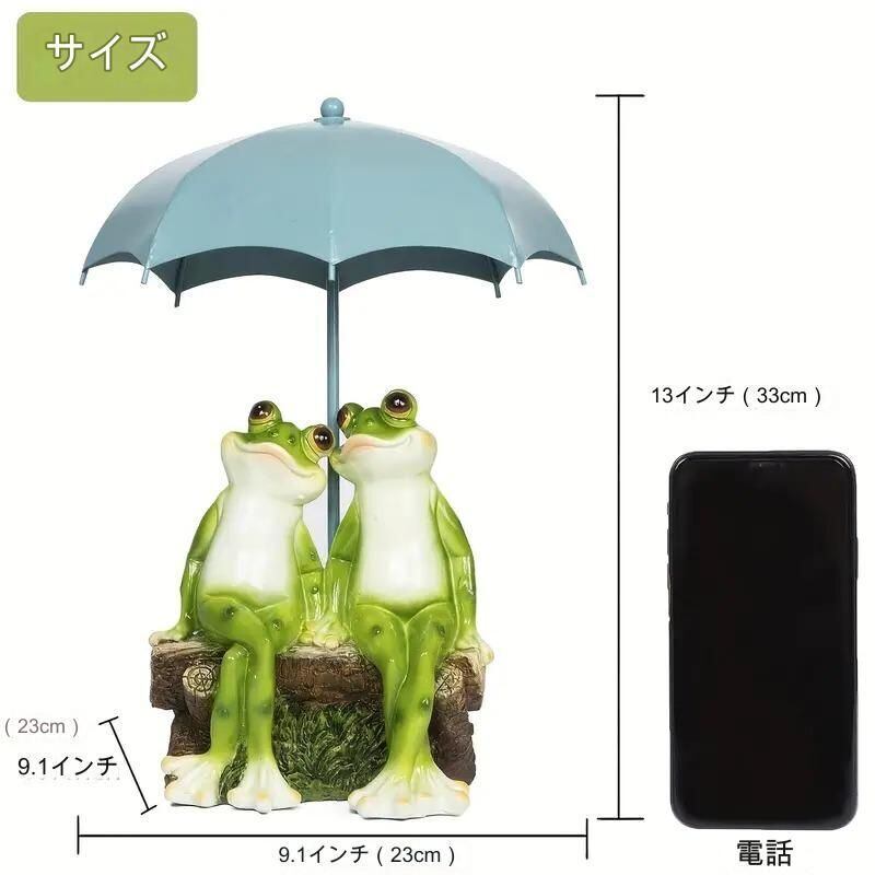 かわいらしいかえるのカップルが庭園を明るく彩ります。手作りの丁寧な仕上げで、幸せを感じさせる表情がポイント。樹脂素材で軽くて丈夫、屋内外どちらでもご使用いただけます。庭やバルコニー、お部屋のデコレーションとしてもおすすめです。かえるは守り神とされていることもあり、幸せや豊かさを象徴する存在として飾ってみませんか?