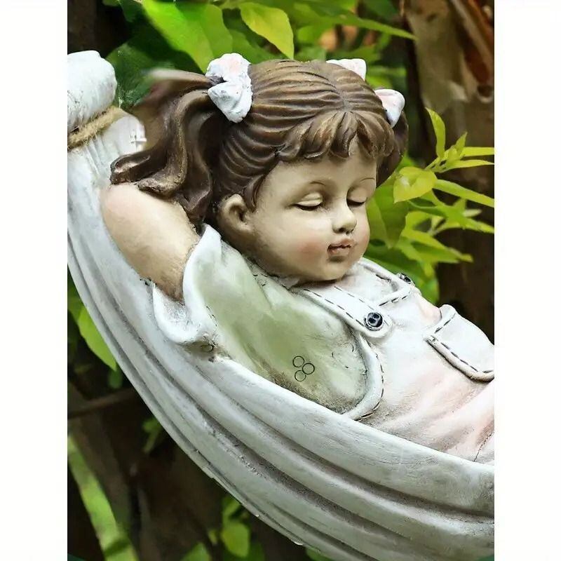 ハンモック 飾り オブジェ オーナメント 女の子 子供 可愛い 屋外庭園用樹脂クラフト アートオーナメント ランドスケーピング DIY 庭園彫刻 ヤード 芝生 ホームデコレーション用 | mellland インテリア 雑貨