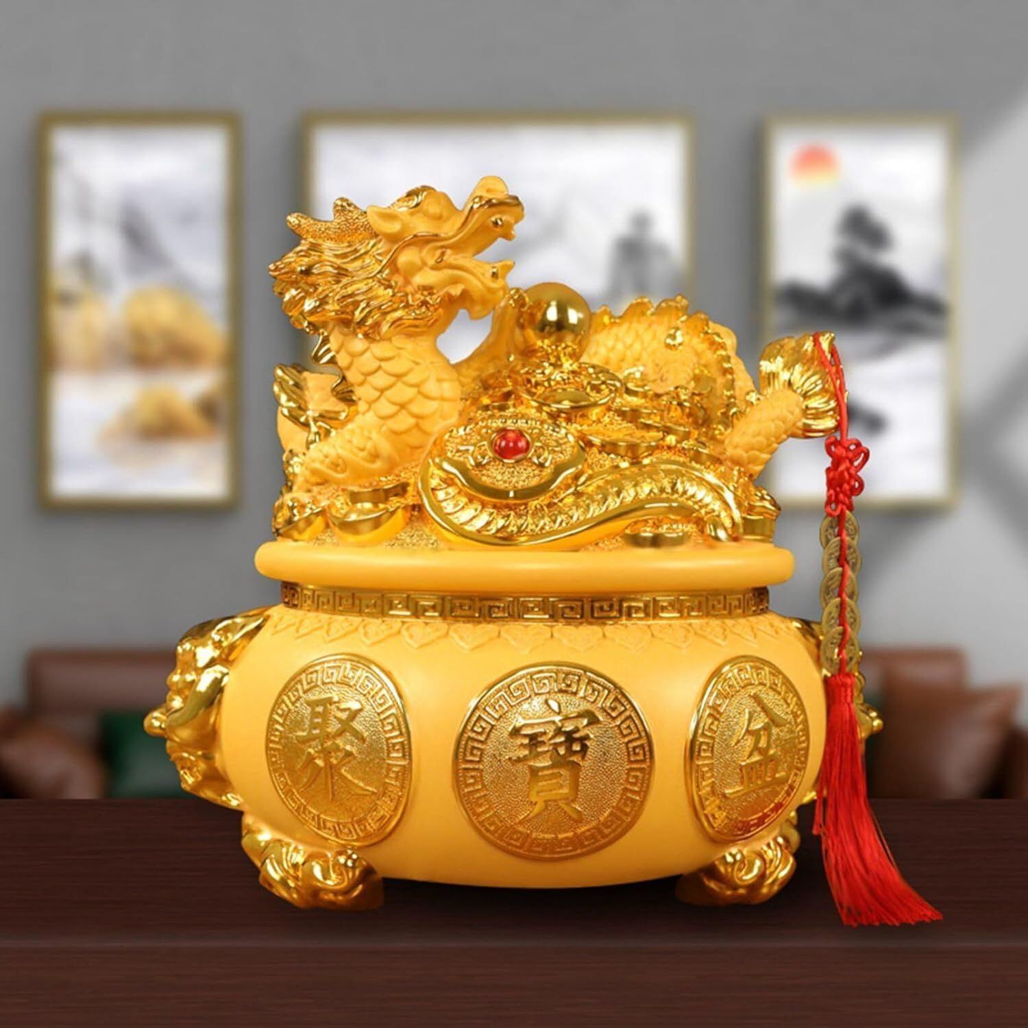 金龍 風水龍は、商売繁盛や金運アップを願う方におすすめの置物オブジェです。5本の爪を持つ龍神様は、風水的にも縁起が良いとされています。この金龍は、何かと重要な商売や仕事の場に飾れば、厄除けや幸運を呼び込むと言われています。また、貯金箱としても使用できるので、毎日少しずつお金をためる習慣にもぴったりです。