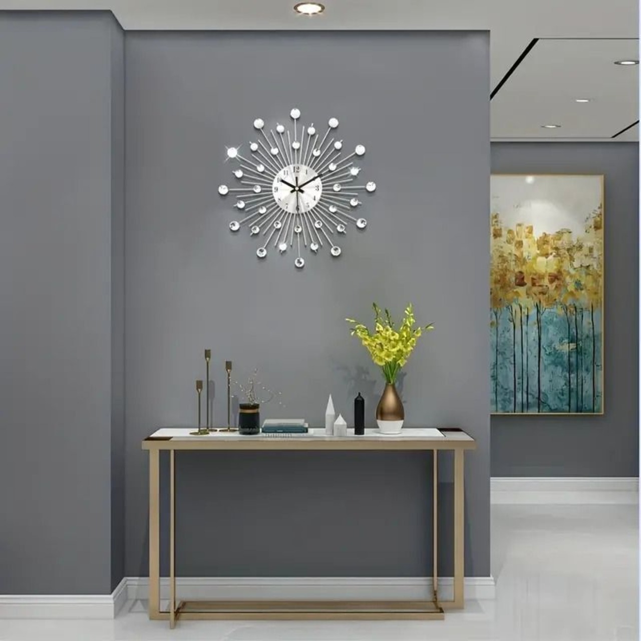 手元を美しく飾る掛け時計、キラキラ輝くシルバークリスタルがお部屋に華やかさをプラス。シックでモダンなデザインがおしゃれなインテリアとしても最適。デジタル表示なので時刻を見やすく、リビングやベッドルームなど、どんな場所にも調和します。