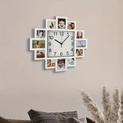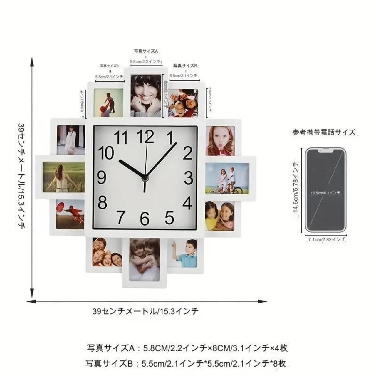 可愛い 壁掛け 時計 白フレーム フォトフレーム アラビア数字 木製フレーム クォーツ 時計 リビングルーム 寝室コラージュ ギフト ホームルーム リビングルーム オフィス おしゃれ | mellland インテリア 雑貨