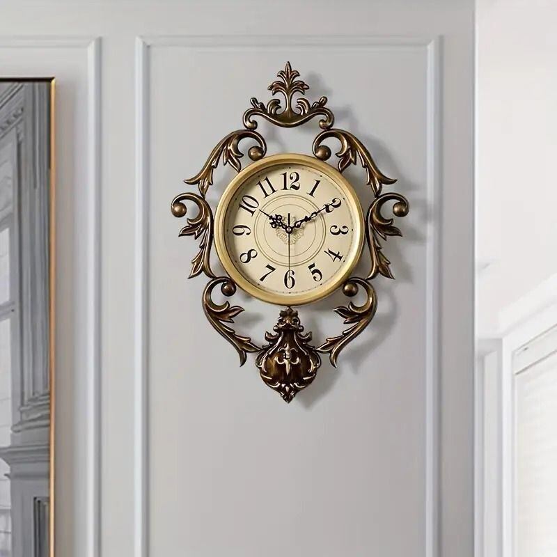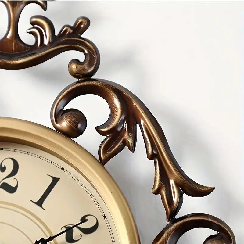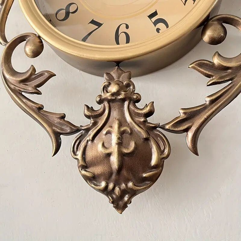 おしゃれで可愛らしいヴィンテージ調の壁掛け時計。サイレントクロックで、静かな空間を演出します。リビングやダイニング、寝室にぴったりなゴージャスでスタイリッシュなデザインが特徴です。