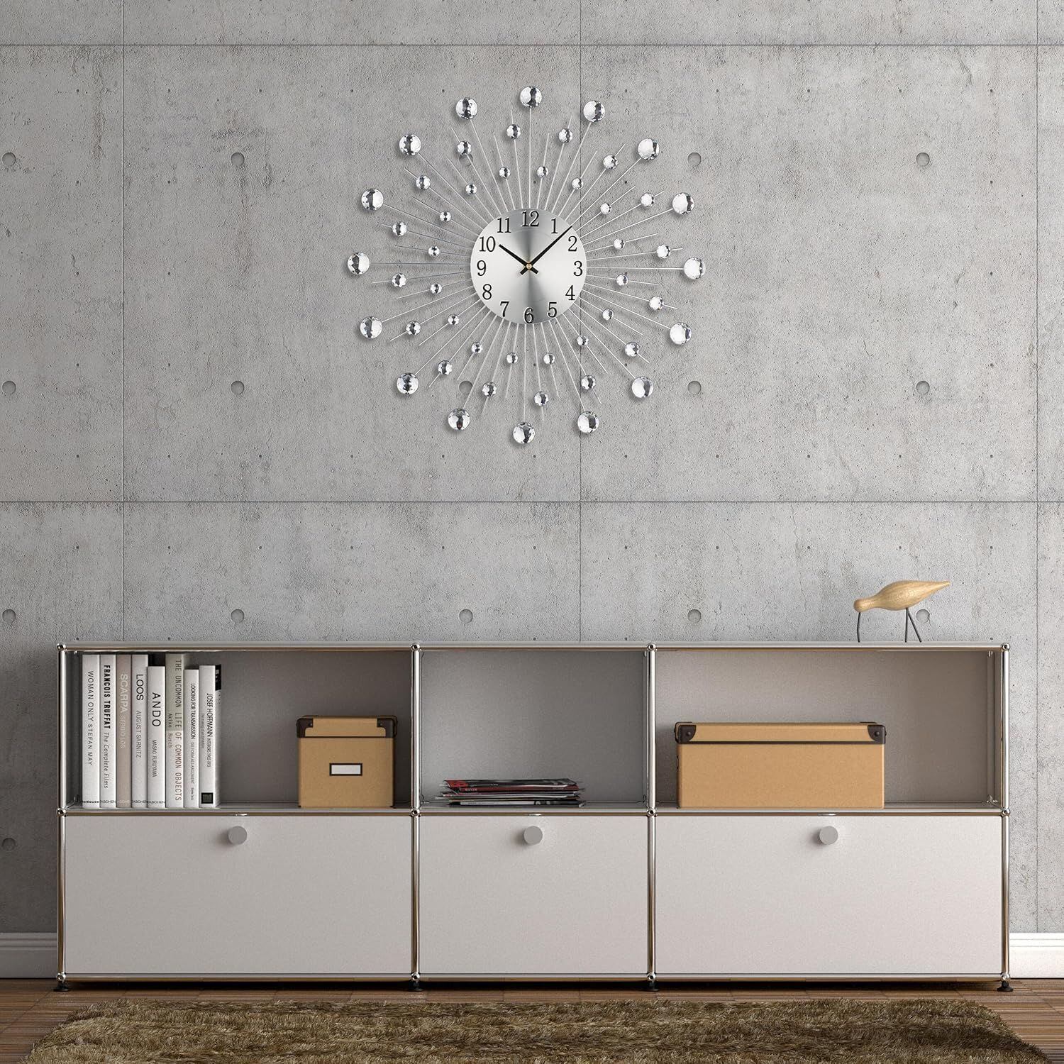 大型時計でインテリアをおしゃれに彩ろう。メタルアートの美しさが際立つ上品な壁掛け時計です。クリアなクリスタルと輝くダイヤモンドを散りばめたデザインは、一目見て心を奪われること間違いなし。お部屋の主役として、おしゃれで綺麗な空間を演出します。