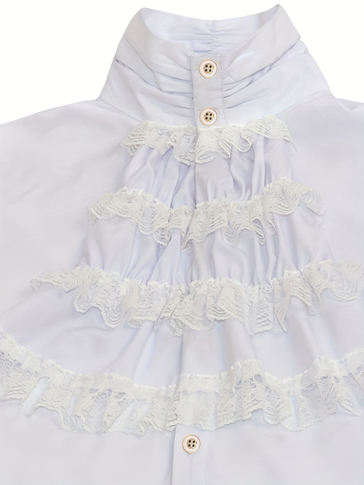 ハイカラーに施されたフリルが、まるで海賊や貴族のような雰囲気を演出します。