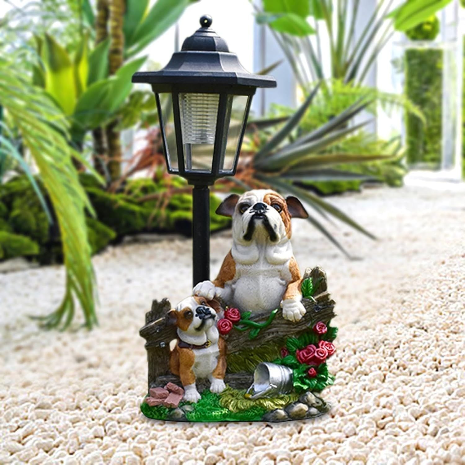 生活空間に素敵なアクセントを加える、かっこいいオーナメント ライトが新登場!犬のフォルムがかわいらしいフレンチブルドッグのセットです。太陽光を取り込み、外部充電不要で自動点灯するソーラーライト機能付きなので、エコとお財布にもやさしいアイテムです。屋外でも安心して使える耐候性にも優れており、どんな場所にも設置可能。ガーデン、玄関先、ベランダなど、お好みの場所に飾ってみてください。
