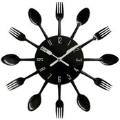 時計 キッチン ウォールクロック クロック 壁時計 おしゃれ インテリア カトラリーデザイン 壁掛け時計 メタル ナイフ フォーク スプーン キッチン時計 クリエイティブ モダン 黒 ブラック | mellland インテリア 雑貨