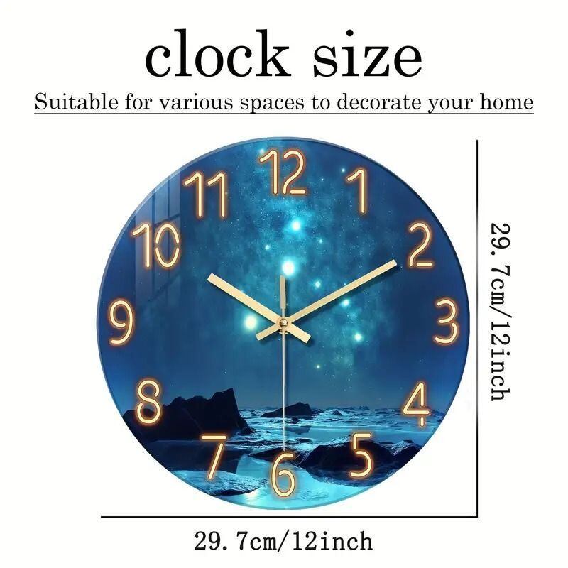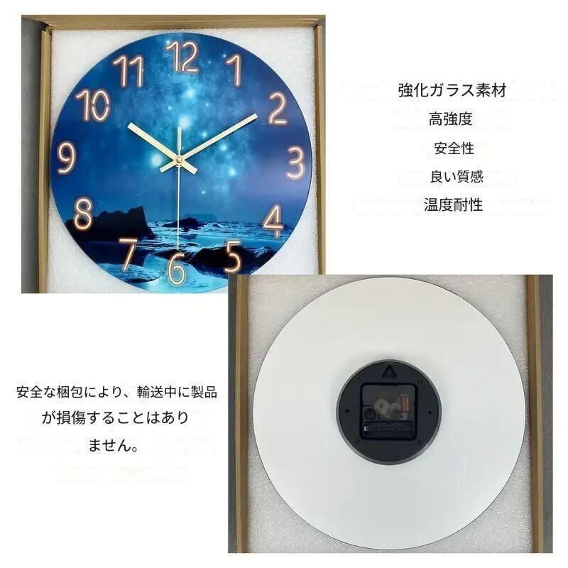 海 掛け時計 素敵 インテリア 夜空 おしゃれ 壁時計 青色 リビングルーム 装飾 キッチン時計 壁掛け 電池式 12インチ ラウンドガラス壁掛け時計 静音 カチカチ音なし | mellland インテリア 雑貨