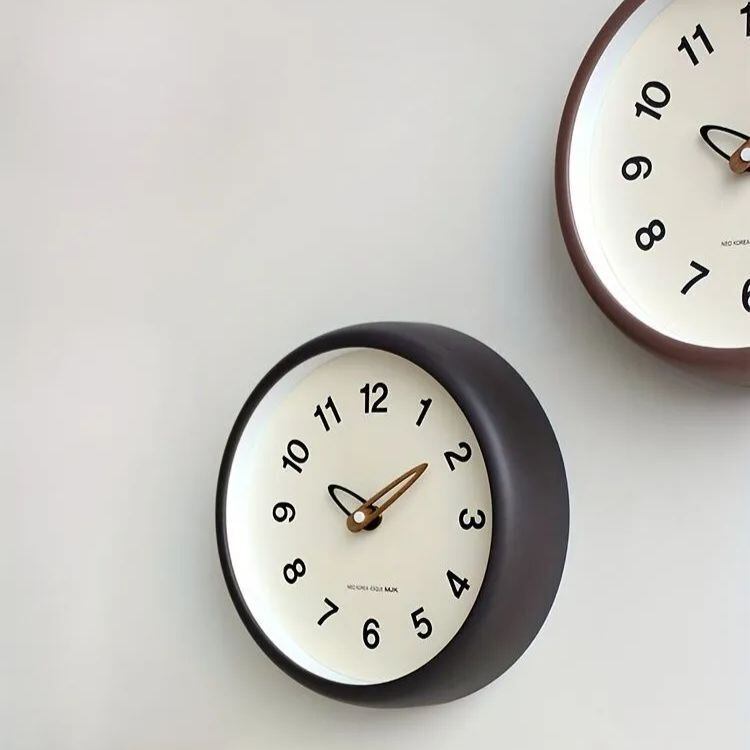 ベッドルームやリビングルームにぴったりな、静かでスタイリッシュな10インチ丸型壁掛け時計です。