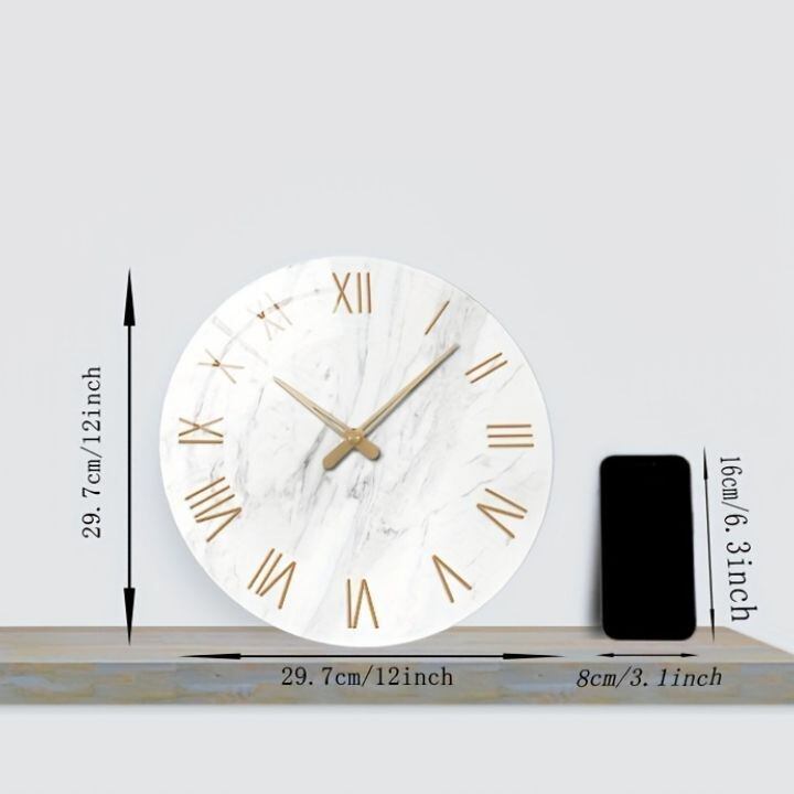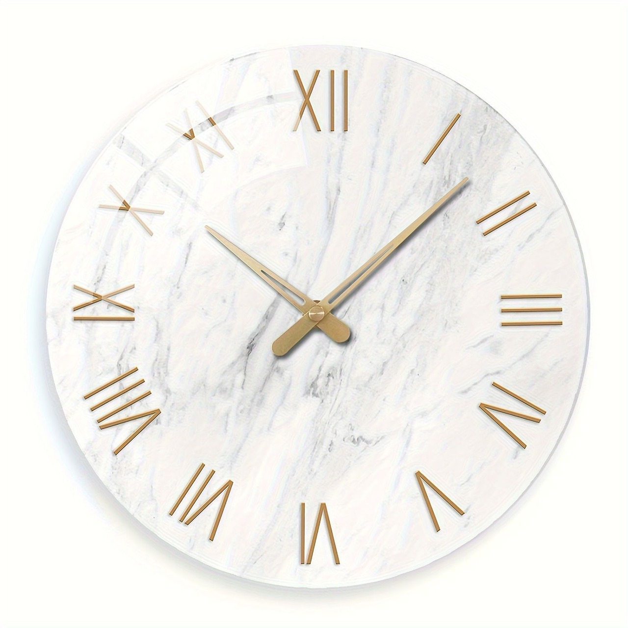 時計 家具 インテリア 高級 モダン 強化ガラス 壁時計 金色の針 大理石パターン サイレント バッテリー駆動 リビングルーム ダイニングルーム 寝室 12インチ 大理石風 | mellland インテリア 雑貨