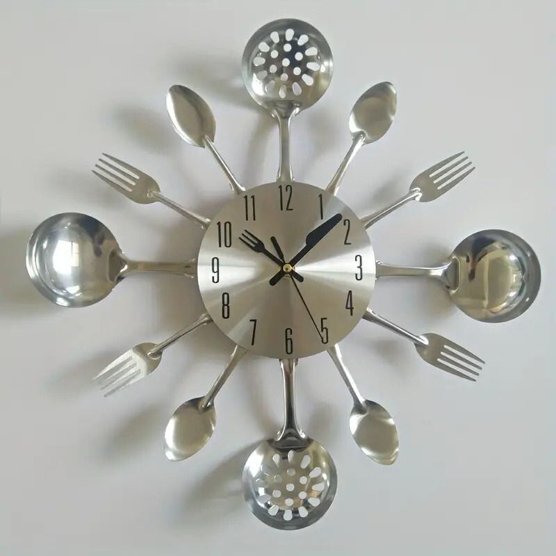 クリエイティブでおしゃれな壁時計、カトラリーをモチーフにした3Dデザインです。インテリアにアクセントを加えたり、キッチンをオシャレに演出したりするのに最適なアイテムです。スプーンやフォークの形をした針が時を刻み、ユニークな雰囲気を演出します。