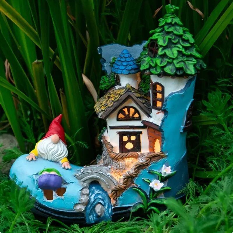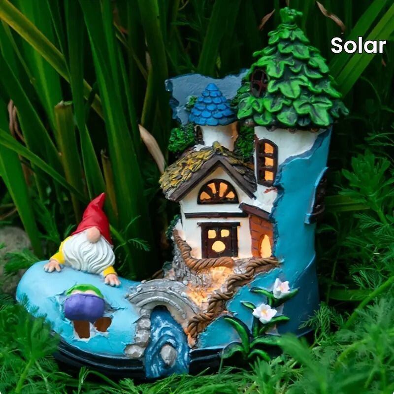 オーナメント 置物 小人 ソーラー 木こりの家 樹脂 ミニチュアフィギュア 屋外装飾 ソーラーパワー ガーデンライト 庭 芝生用 ツリー オーナメント 新築祝い ギフト | mellland インテリア 雑貨