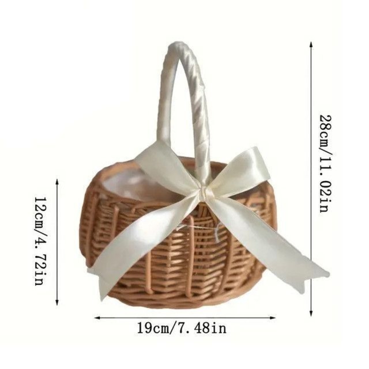 フラワーバスケット 結婚式 プチギフト 2個セット かご ラタン ハンドバスケット おしゃれ かわいい フラワーガール ウェディング ハンドル付き リボン 藤 収納 インテリア 小物 花用 大きいサイズ 直径19cm | mellland インテリア 雑貨