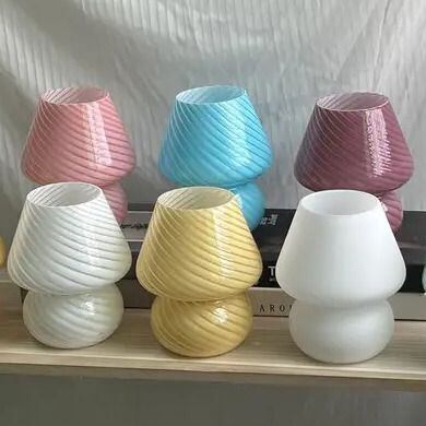 このテーブルランプは、かわいらしいキノコの形をしたデザインが特徴です。ベッドサイドやデスクにぴったりなサイズ感で、柔らかな光を放つことで、リラックスした雰囲気を演出します。ガラス製の本体は、上品なストライプパターンがおしゃれ感を引き立て、寝室やリビングに素敵なアクセントを加えます。ナイトライトとしても最適で、寝る前のひとときを優しい明かりで包み込みます。レトロな雰囲気を持ちながらも、可愛らしさを兼ね備えたこのランプは、どんなインテリアとも調和します。