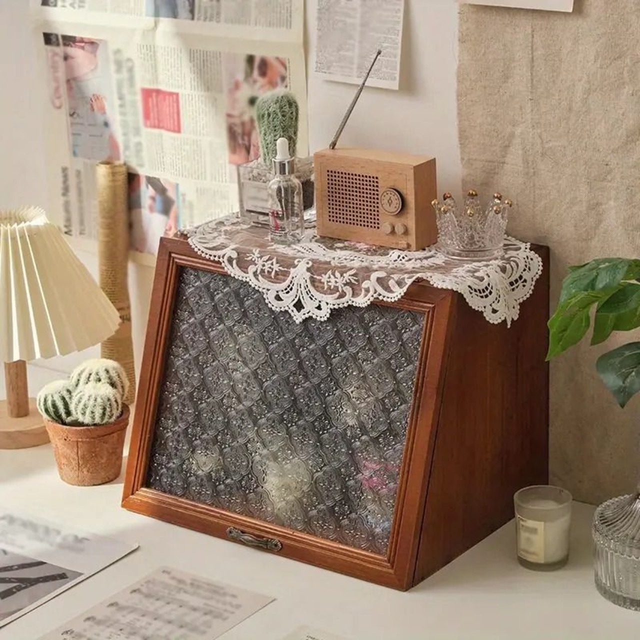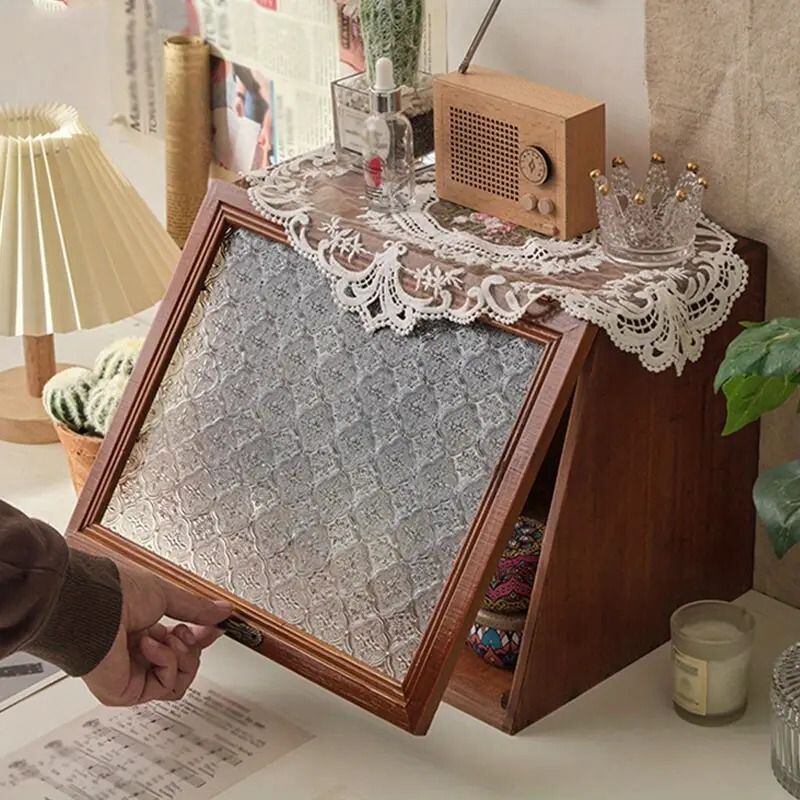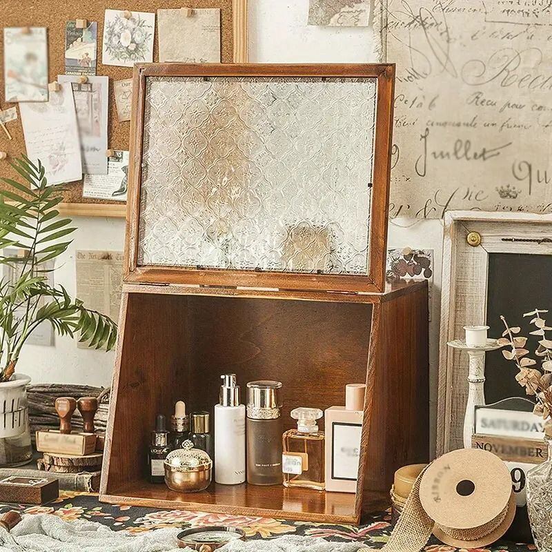 木製収納ラックは、デスク周りやキッチンの小物整理に特化したおしゃれなアイテムです。化粧品や調味料、ミニ食器などをスマートに収納できるため、使い勝手も抜群です。特にヴィンテージな雰囲気を持つこのラックは、どんなインテリアにもマッチし、空間を引き立ててくれます。扉付きの設計により、見せたくないものは隠せる一方、ガラス扉が施されているため、お気に入りのアイテムを飾る楽しみもあります。デスク上やキッチンに置いても場所を取らず、コンパクトながらも収納力を持つこのラックは、毎日の生活をより便利にしてくれることでしょう。
