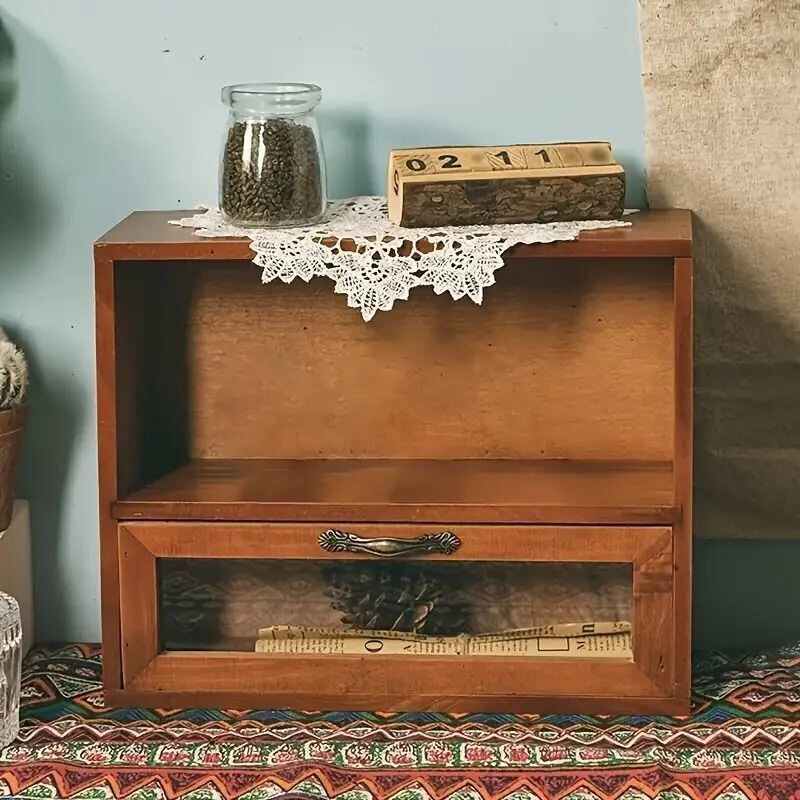 卓上 収納ボックス 収納ケース 木製 オープンキャビネット 収納ラック デスクオーガナイザー 化粧品 小物入れ ヴィンテージ アンティーク風 収納 扉付き 引き出し 収納棚 レトロ | mellland インテリア 雑貨