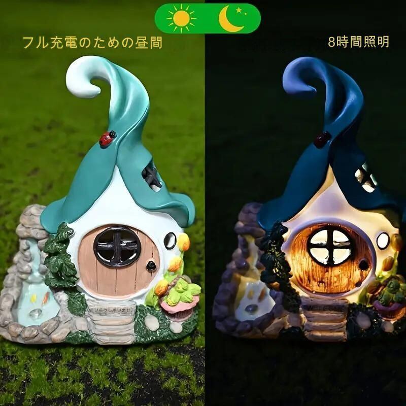 ガーデンオーナメント 置物 ソーラーライト 屋外照明 ミニハウス ミニチュア ノーム 妖精 小人 フェアリーハウス ガーデンライト 屋外 庭 玄関 ライト ガーデンオブジェ かわいい おしゃれ ガーデニング | mellland インテリア 雑貨
