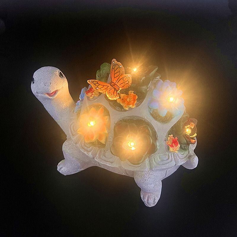 亀の置物 ソーラーライト 庭の装飾 ガーデンオーナメント オブジェ 庭の彫像 屋外照明 かわいい インテリア雑貨 カメ 亀 蝶 花 ソーラー置物 屋外 ライト 照明 ガーデニング ガーデンライト 庭 玄関 | mellland インテリア 雑貨