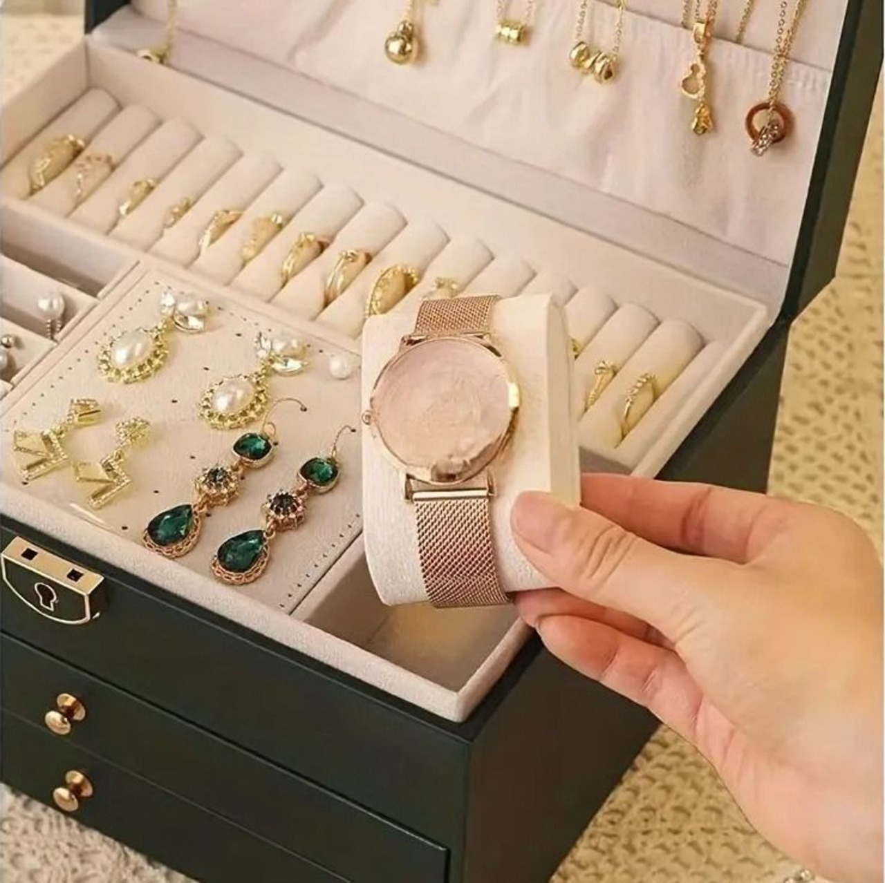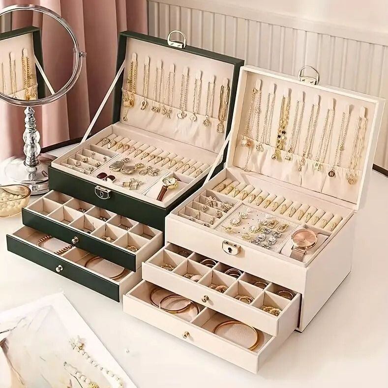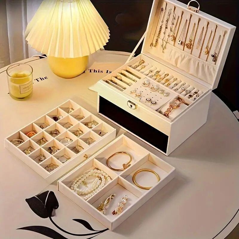 魅力的な宝石箱、ジュエリーボックスであなたの大切なアクセサリーを華やかに収納しませんか?この3段引出付きのジュエリー収納ボックスは、豊富な収納力を誇り、ネックレス、イヤリング、指輪などをすっきり整理できます。鍵付きの設計で、貴重品もしっかり守ります。高級感あふれるパールホワイトのデザインは、どんなインテリアにも調和し、使わない時も美しいアクセントとなります。仕切りも施されているため、細かいアイテムもしっかりと整頓することが可能です。