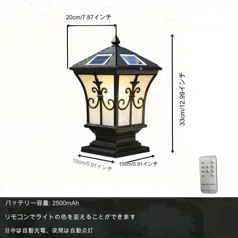 余韻を持たせるレトロなデザインと機能性を兼ね備えたガーデンライトは、あなたの屋外空間を魅力的に変貌させます。ソーラー充電を採用し、エコフレンドリーなこのスタンドライトは、リモコンを使ってホワイト、ウォーム、ニュートラル、レッドの4種類の調光モードを選ぶことができます。門柱灯や玄関照明として最適で、優雅さを加えます。このスタンドライトは、庭園やテラスにぴったりのアイテムで、夜のひとときをより一層楽しませてくれるでしょう。特別なイベントや日常のアクセントとして、心温まる雰囲気を醸し出します。