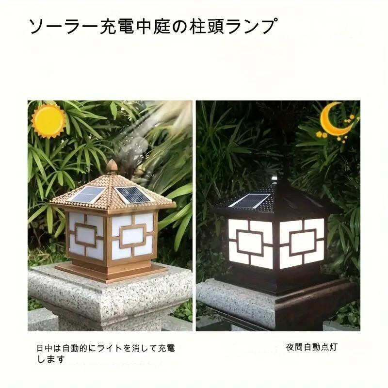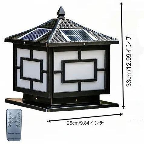 ソーラーライトは、和風でレトロなデザインが魅力的な屋外照明です。玄関やエントランスの美しい演出に最適で、暗くなると自動で点灯し、エネルギー効率の良いLEDライトが明るさを提供します。リモコンによる調光機能を備えており、ホワイト、ウォーム、ニュートラル、レッドの4つのモードからお好みの明るさを選ぶことが可能です。さらに、柱上に取り付けることができるので、ガーデンライトや門柱灯としても活躍します。庭園やポストの照明として、おしゃれで機能的な空間を演出します。