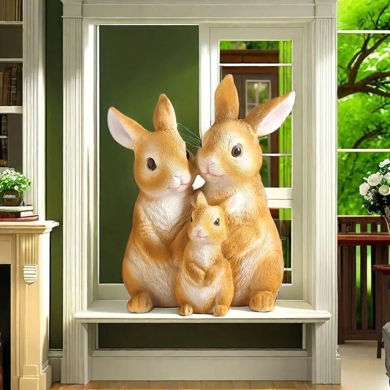 うさぎ 置物 オーナメント インテリア かわいい おしゃれ ウサギ うさぎの親子 癒し 卓上 オブジェ ラビット 庭 バルコニー ベランダ リビング 玄関 プレゼント ガーデンオーナメント 屋外 室内 | mellland インテリア 雑貨