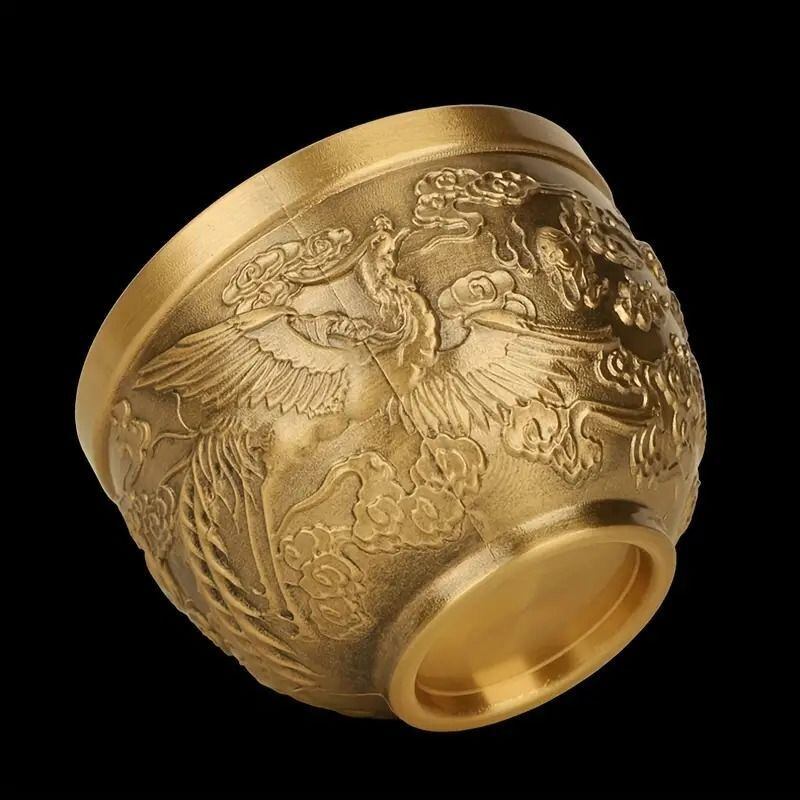 この装飾品は、古代の神秘と風水の象徴である龍と鳳凰をテーマにした美しい置き物です。アンティーク調の真鍮製で、洗練されたデザインが特徴のティーカップやワインカップとしてもご使用いただけます。まるでタイムトラベルをしたかのような魅力があり、お部屋の雰囲気を華やかに引き立ててくれます。独自のアートピースとしてだけでなく、ジュエリー収納やホームデコレーションにもぴったりです。伝説的な生き物たちの存在感は、家のインテリアに奥深い物語を添えます。美しさと実用性を兼ね備えた装飾品は、ギフトにも最適です。