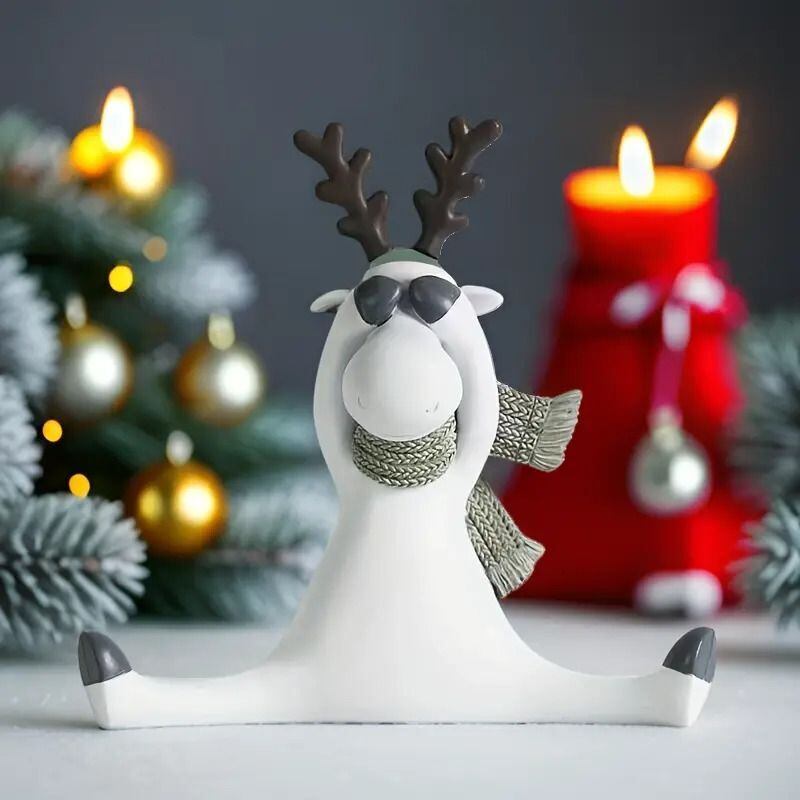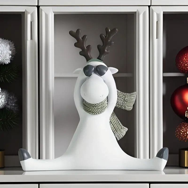 心温まるクリスマスディスプレイを演出するトナカイの置き物