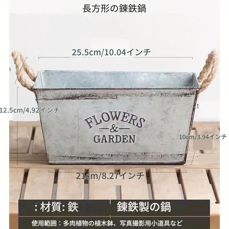 このプランターは、家庭の庭や窓際、玄関など、さまざまな場所で活躍する多機能なアイテムです。美しい鉄素材にアンティーク仕上げを施し、独特な錆加工が施されたこの商品は、単なる植木鉢としてだけでなく、小物入れとしても使える優れたデザインが魅力です。お花や観葉植物をお洒落に飾りながら、インテリアの一部としてもご利用いただけます。また、子供のおもちゃ箱や雑貨入れとしても重宝し、シンプルで飽きの来ないデザインが、どんなスタイルの室内にもマッチします。
