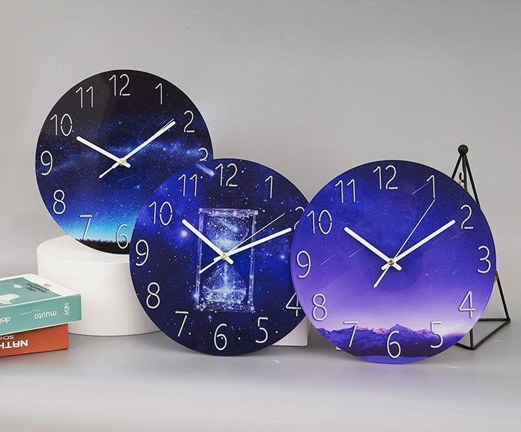 掛け時計 壁掛け時計 ウォールクロック 北欧 モダン スタイリッシュ 強化ガラス 電池式 壁掛け 時計 サイレント 静音 直径30cm 丸型 おしゃれ リビング 寝室 インテリア アート 星空と砂時計 | mellland インテリア 雑貨