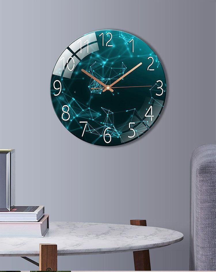 洗練されたデザインと静音機能を兼ね備えたおしゃれな壁掛け時計。お部屋のインテリアを引き立てるこの時計は、モダンな雰囲気を演出しつつ、時間を一目で確認できる実用的なアイテムです。強化ガラスを使用した丸型のデザインは、光の反射を楽しむことができ、アナログクォーツ式なので、正確な時間を提供します。リビングや寝室、ダイニングなど、さまざまな空間にマッチするクリエイティブなアートとしてお使いいただけます。直径30cmのちょうど良いサイズ感で、どんな壁にもスムーズにフィットし、飽きのこないシンプルさを兼ね備えています。