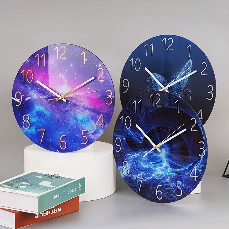 掛け時計 壁掛け時計 ウォールクロック 強化ガラス サイレント 静音 電池式 クリエイティブ スタイリッシュ 直径30cm 丸型 インテリア時計 壁掛け 時計 おしゃれ モダン インテリア アート 稲妻と雷鳴 | mellland インテリア 雑貨