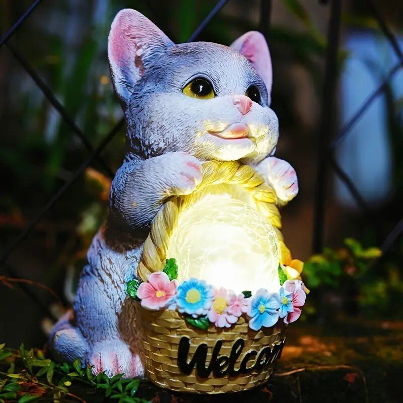 小動物好きの心をくすぐる、グレーのキャットデザインのライトです。このかわいい置物は、太陽光を利用したソーラーライトとして機能し、日中は自然の力で充電し、夜には優しい光で周囲を照らします。リアルな猫の姿を持つこのランタンは、インテリアにアンティークな雰囲気をプラスし、あらゆる場所でのアクセントとなります。かわいらしさと実用性を兼ね備えたこのアイテムは、猫好きな方やギフトとしても最適です。