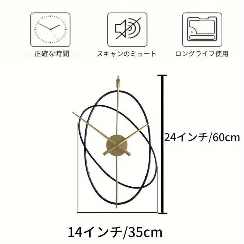ウォールクロック 掛け時計 インテリア 時計 アナログ 静音 サイレント 電池式 壁掛け時計 エレガント おしゃれ シンプル 北欧 ホームデコレーション 装飾 モダン 高級感 リビング 寝室 キッチン オフィス 60×35cm | mellland インテリア 雑貨
