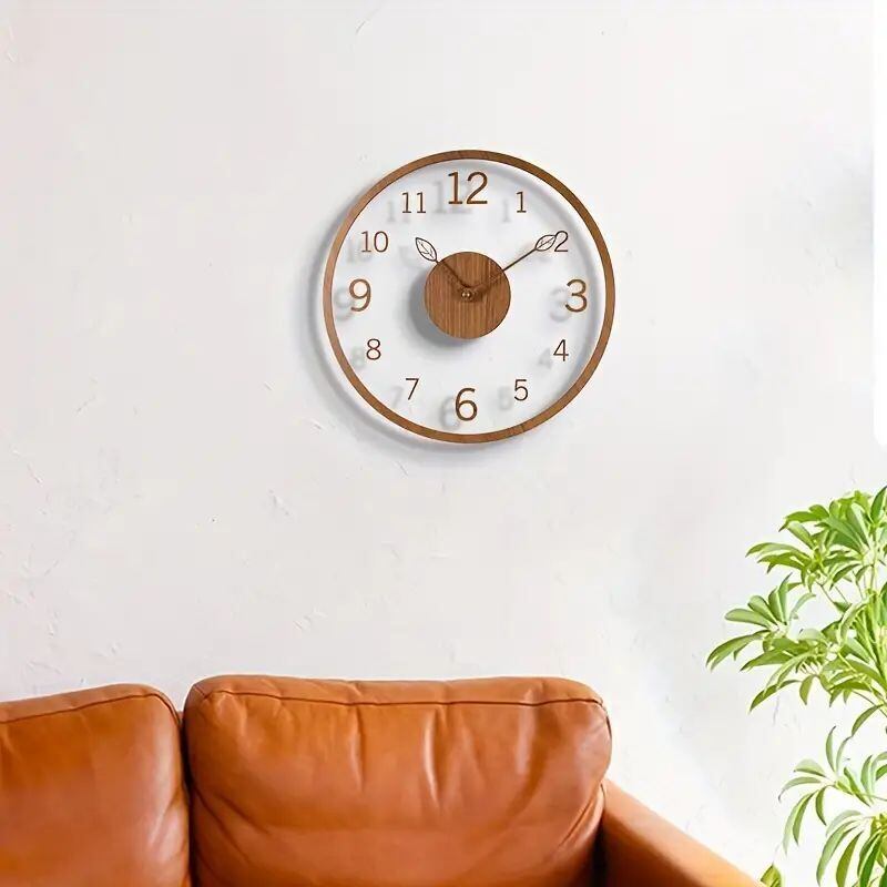 シンプルでモダンなデザインのインテリア時計は、リビングや各お部屋にぴったりのスタイリッシュなアイテムです。清潔感ある透明なフレームと木目調のリーフ柄が、ナチュラルな雰囲気を演出します。ミニマリストの方にもおすすめできるシンプルなルックスは、どんなインテリアにも調和し、洗練された空間を作り出します。