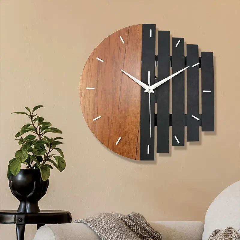 おしゃれでスタイリッシュな掛け時計は、リビングや寝室、オフィスにぴったりなアイテムです。モダンなデザインとライトウッドカラーのバイカラーが特徴で、どんなインテリアにも自然に溶け込みます。音が気になる方にも安心のサイレント設計で、静かな空間を作り出します。