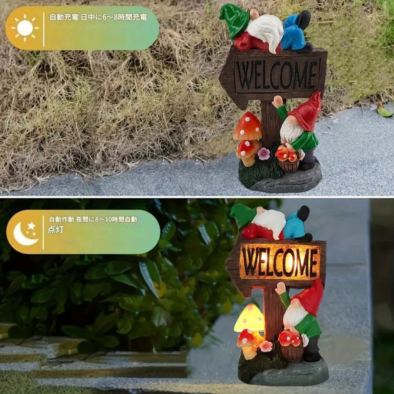 小人のウェルカムアイテムが、玄関やガーデンにかわいらしさをプラスします!このアイテムはアンティークでヴィンテージ感あふれるデザインが特徴で、訪れるゲストを温かく迎え入れてくれる存在感を持っています。ソーラー充電式なので、昼間に太陽の光をたっぷり吸収し、夜には優しい光を放ち、心地よい雰囲気を演出します。