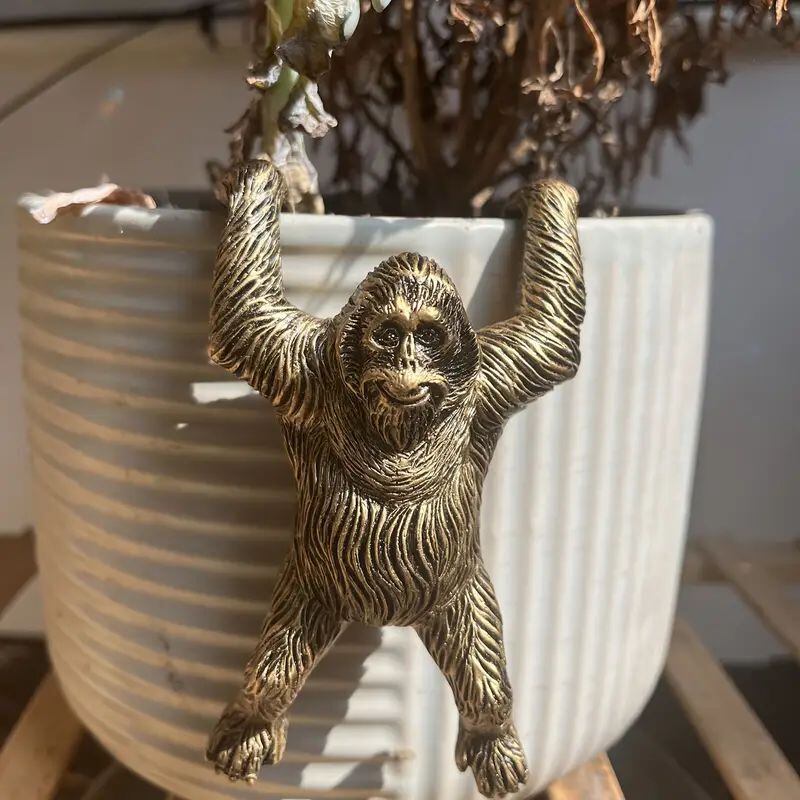 個性的でかわいらしいチンパンジーの壁掛けインテリア雑貨です。このヴィンテージ感溢れるデザインは、リビングや玄関にユニークなアクセントを加え、お部屋の雰囲気を一新させます。樹脂素材でできているため、軽量でありながらもしっかりとした存在感を持っており、どんな空間にも馴染みます。