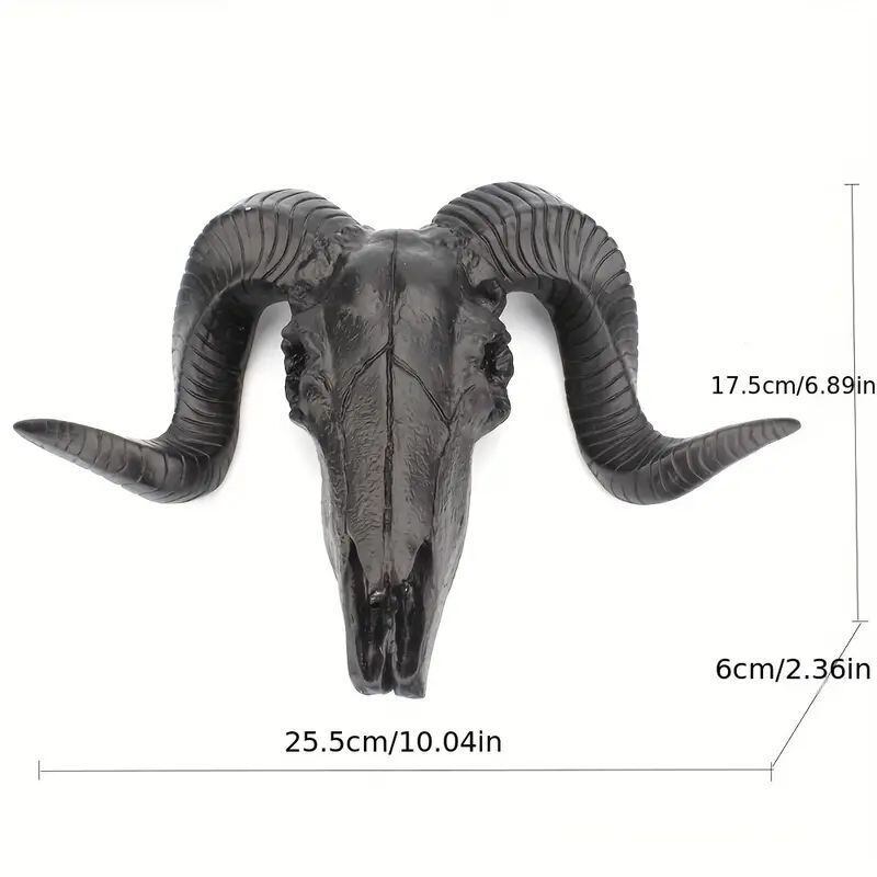 このインテリアは、あなたのリビングルームに特別な魅力を加える美しいウォールデコレーションです。動物の頭蓋骨をモチーフにしたヴィンテージスタイルで、精巧な作りとブラックの色合いが高級感を演出します。壁に掛けるだけで、シンプルながらも存在感のあるアート作品としてお部屋の雰囲気を一新してくれることでしょう。