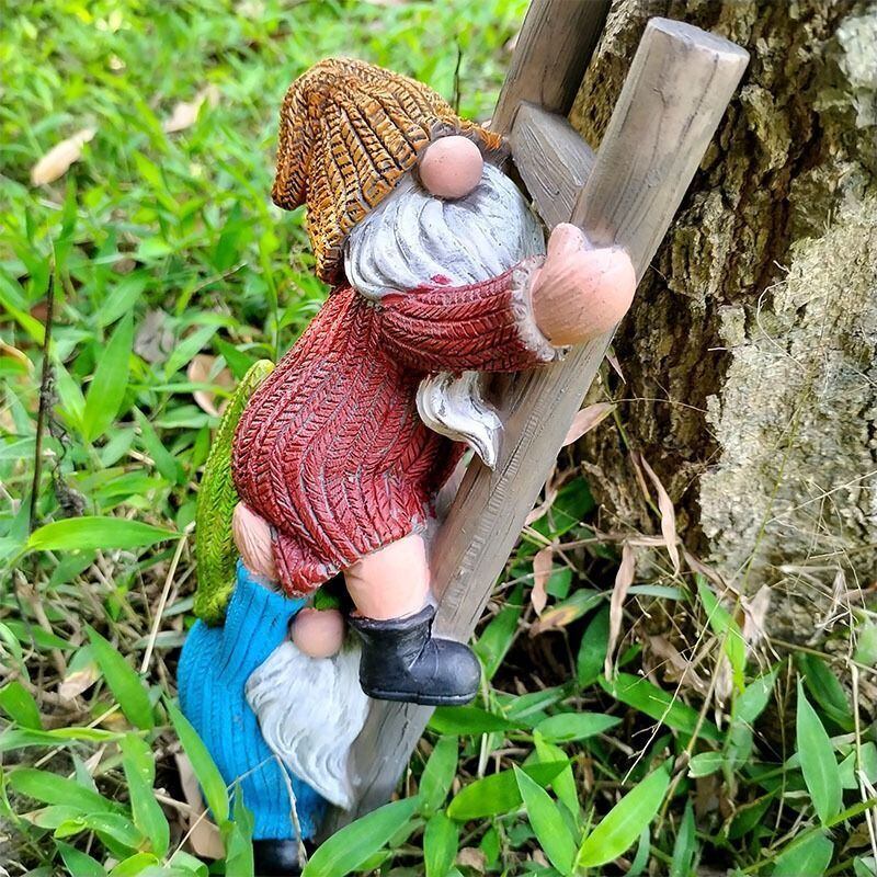 ガーデンノーム 屋外装飾 ガーデンオーナメント 庭の飾り 樹脂 かわいい 梯子を上がる ノーム ドワーフ フィギュア オーナメント 可愛い 小人 インテリア 置物 ガーデニング 雑貨 | mellland インテリア 雑貨