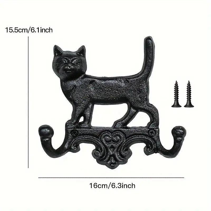 壁掛け フック 引っ掛け ダブルフック ウォールフック 猫 ネコ 動物 壁 装飾 アイアン アート 鋳鉄 おしゃれ アンティーク調 ヨーロッパ 玄関 アクセサリー雑貨 キャット オーナメント ウォールデコ | mellland インテリア 雑貨