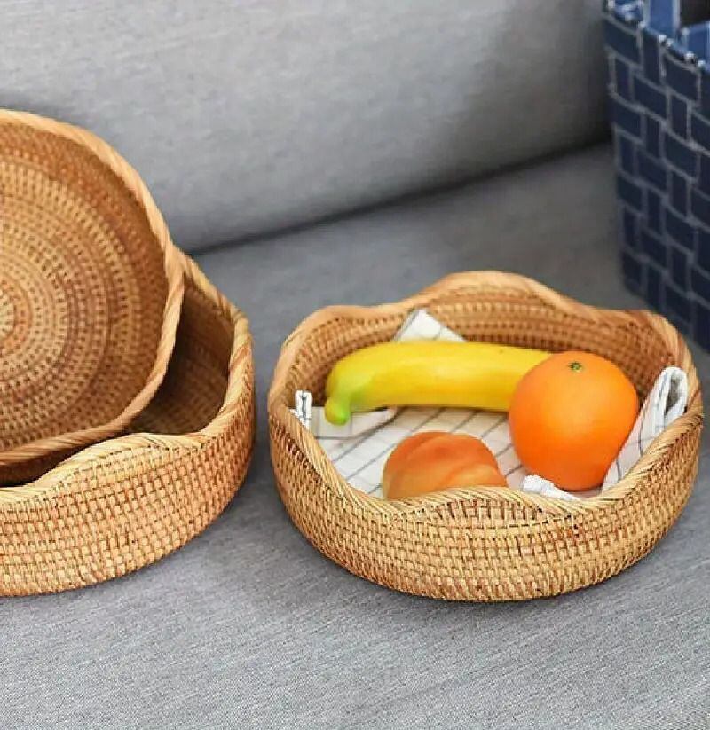 ラタン バスケット 籠 かご フルーツバスケット 小物入れ アジアン 雑貨 藤編み 手編み おしゃれ 小物収納 装飾 コスメ 果物 フルーツ お菓子 収納 ナチュラル 卓上 トレー プレート Mサイズ 直径24cm×高さ8cm | mellland インテリア 雑貨