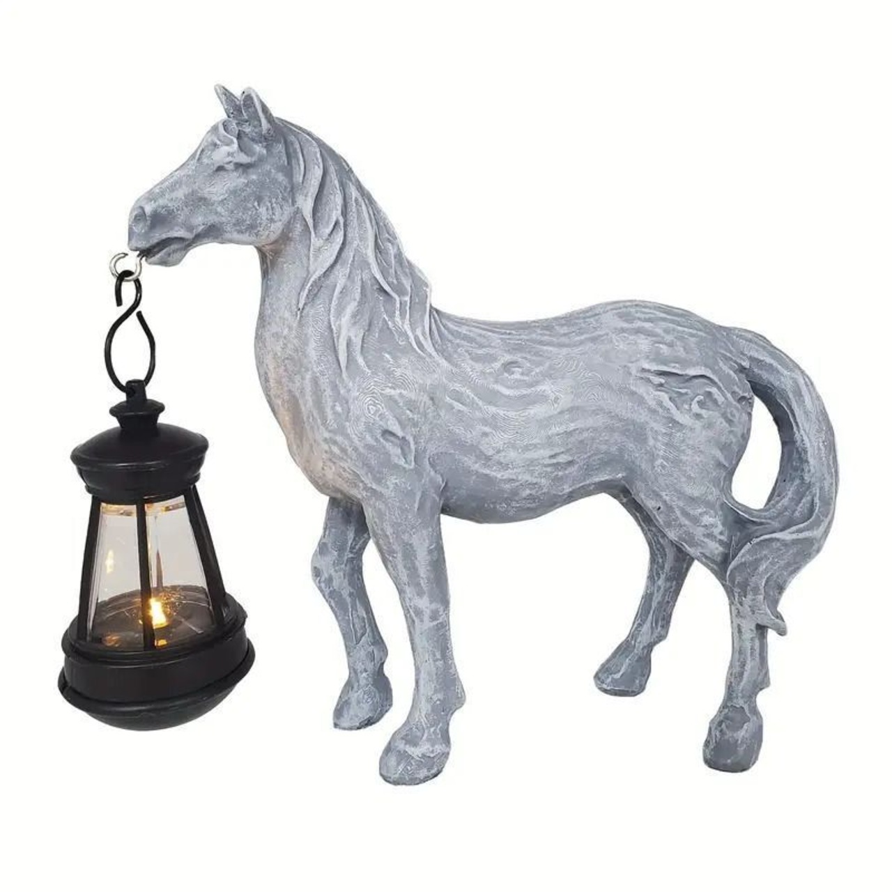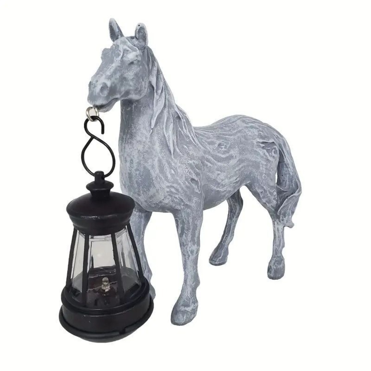 馬 オーナメント 置物 ソーラー充電 ランタン付き 屋内 屋外 装飾 ウマ 馬の置物 アンティーク調 おしゃれ 樹脂 ガーデンオーナメント オブジェ 卓上 アクセサリー 庭 バルコニー ブロンズ グレー | mellland インテリア 雑貨