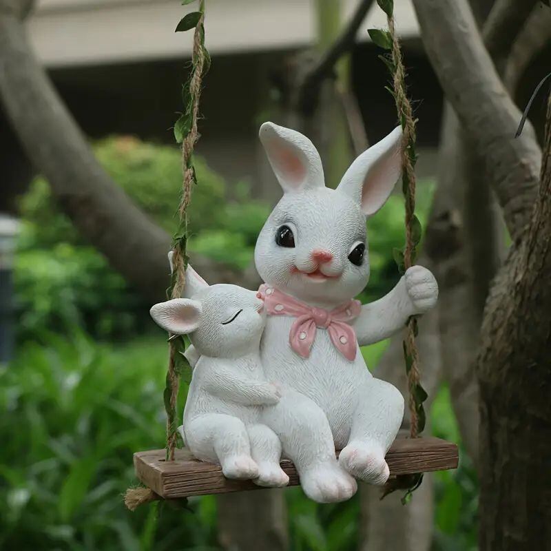 かわいいラビットがブランコに乗っている雑貨は、イースターの装飾としても大活躍!北欧風のデザインにアンティークな雰囲気が漂い、お部屋やガーデンを華やかに彩ります。親子のウサギがブランコに乗っている姿は、見る人にほっこりとした癒しを与えてくれること間違いなし。お子様の遊び場やリビング、玄関など、様々な場所で楽しめるインテリア雑貨です。温もりのある作りで、小動物好きな方にもぴったりのアイテムです!