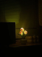 おしゃれでかわいいチューリップライトが、あなたの空間に華やかさをプラスします!このLEDランタンは、花瓶付きのデザインで、インテリアとしても楽しめるアイテムです。優しい光が夜の足元やデスクを照らし、ナイトランプとしても最適。どんな場所でもぴったりと溶け込むデザインは、リビングやベッドルームに自然にハーモニーを生み出します。特別な日のお祝いとして、または大切な方へのプレゼントにもおすすめです。